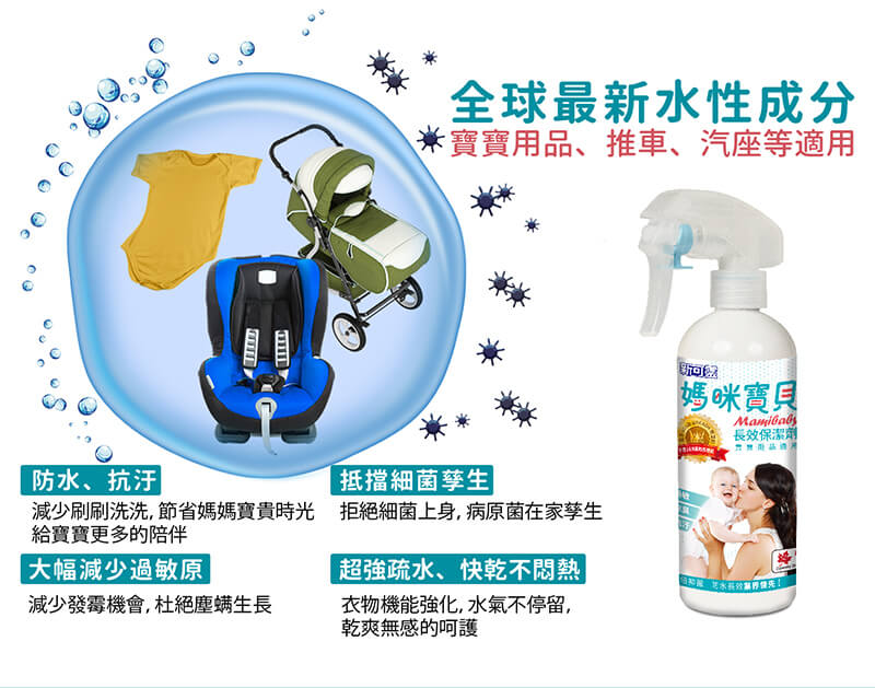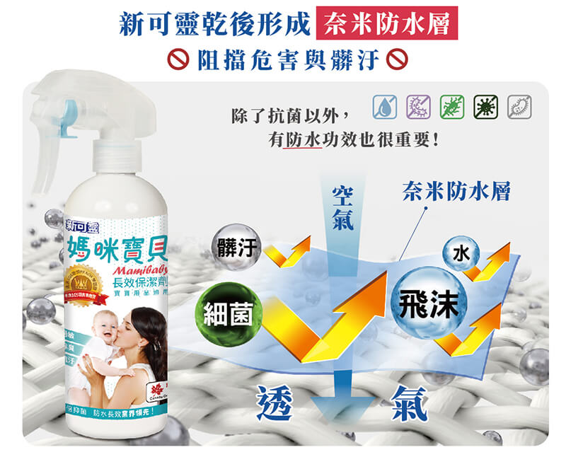 NewClean Mamibaby 新可靈 - 媽咪寶貝 抗菌防水噴霧(320ml) 經SGS專業測試噴上新可靈高達99%抑菌率