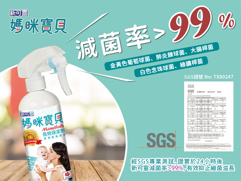 NewClean安全、環保、不殘留有害物質,更通過SGS皮膚過敏試驗,因此可安心使用於寶寶的衣物或玩具上。