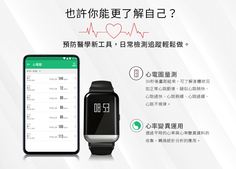 心電圖 (亦稱 ECG 或 EKG) 是一種記錄心跳狀況的方法,記錄促使心臟跳動的電信號時間和強度。透過閱讀心電圖,醫生能了解你的心臟狀態,檢查心律並找出是否有不規律的情況。