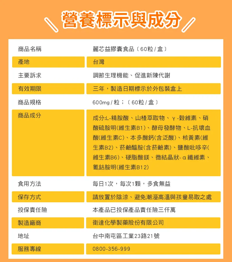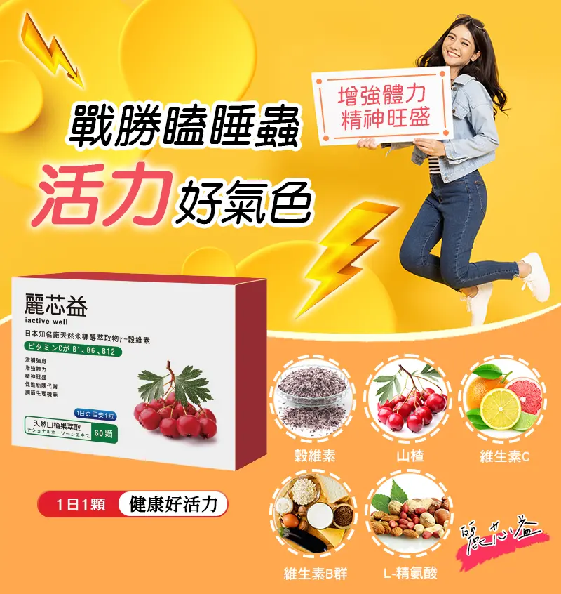 麗芯益膠囊食品(60顆),含有穀維素/維生素C/維生素B群/B1/B2/B6/B12[調節生理機能 滋補強身 增強體力 精神旺盛 促進新陳代謝]