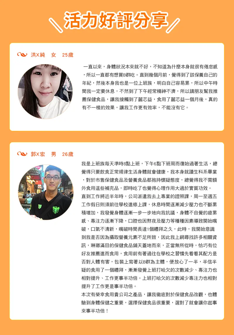 提醒您,本產品屬食品。任何有關疾病、診斷及療效等,請務必諮詢您的醫師。 本產品介紹之食用心得,係屬該消費者者之個人意見,不代表本公司之意見。