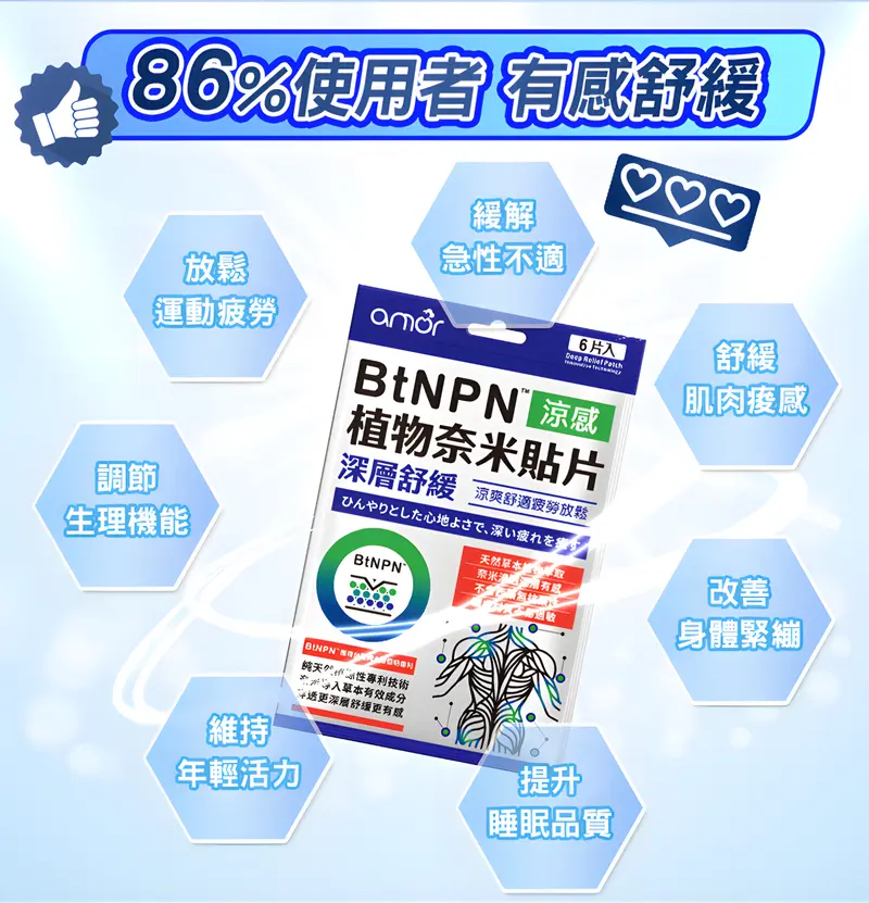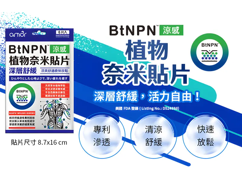 麗臺生醫 amor BtNPN植物奈米貼片【薑黃素增量版】(1包6片)麗臺生醫貼布 涼感貼布 奈米滲透 深層放鬆