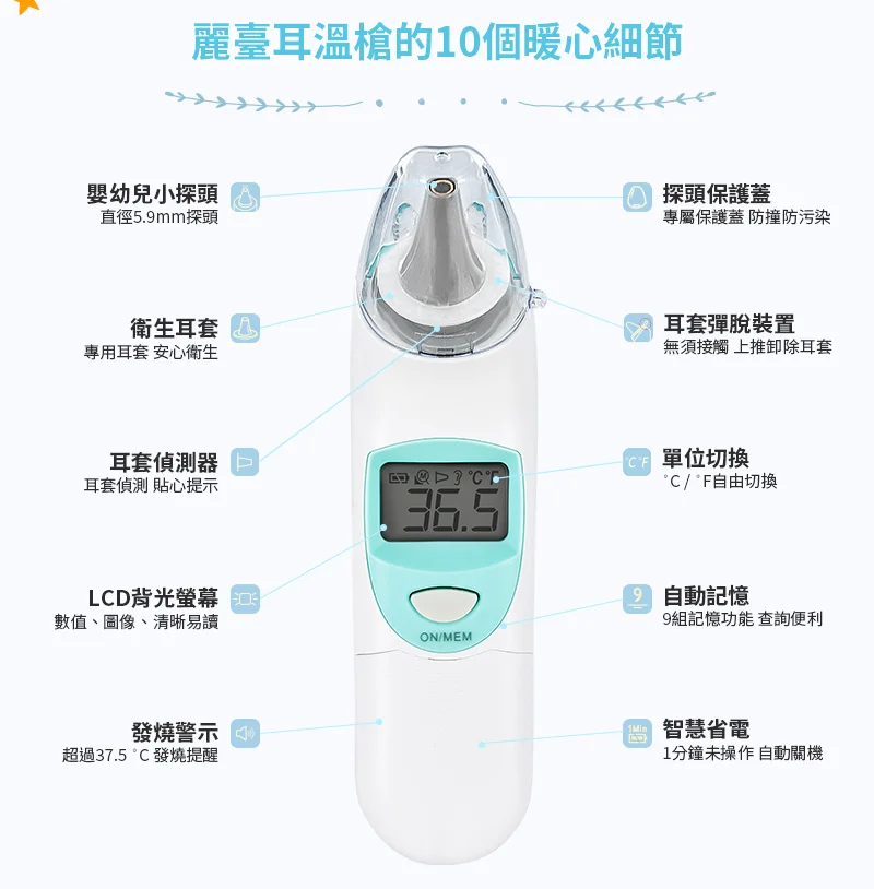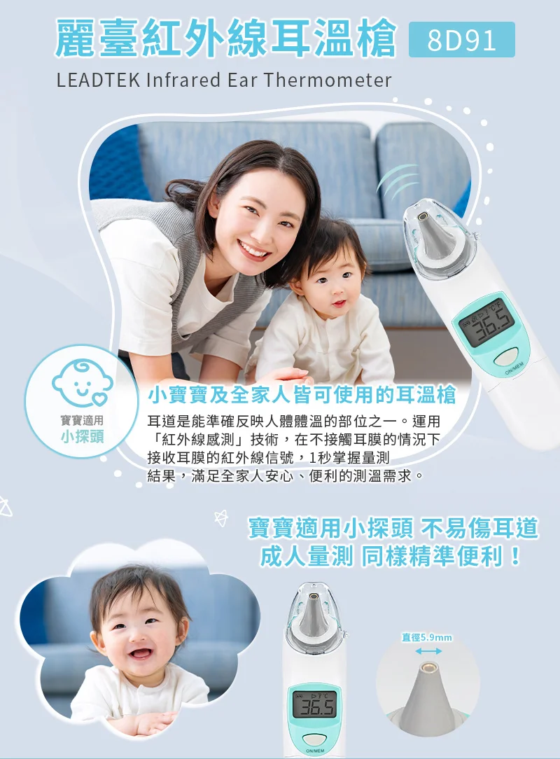 麗臺生醫紅外線耳溫槍 8D91【寶寶適用小探頭 一秒量測,內附21個耳套】台灣製