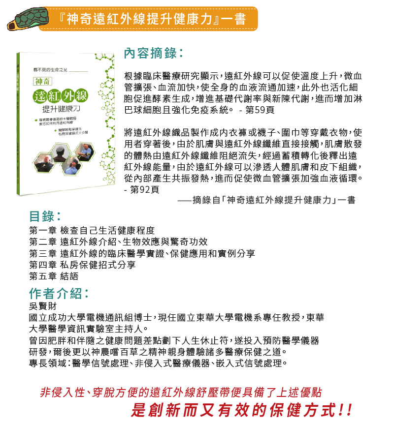 舒壓帶/眼罩經遠紅外線原理與人體折射/反射作用產生接近體溫或比體溫略高1~2℃左右,進而幫助新陳代謝。若沒有持續使用則無法保持一定溫度。